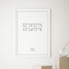 inkl. MwSt.Ein paar Ziffern, die die Welt bedeuten können! Das Koordinatenposter II erinnert dich oder deine Liebsten an einen besonderen Ort. Perfekt als Geschenk zum Einzug, als Gastgeschenk oder einfach nur für die eigenen vier Wände, verleiht es jedem Zuhause eine individuelle Note.